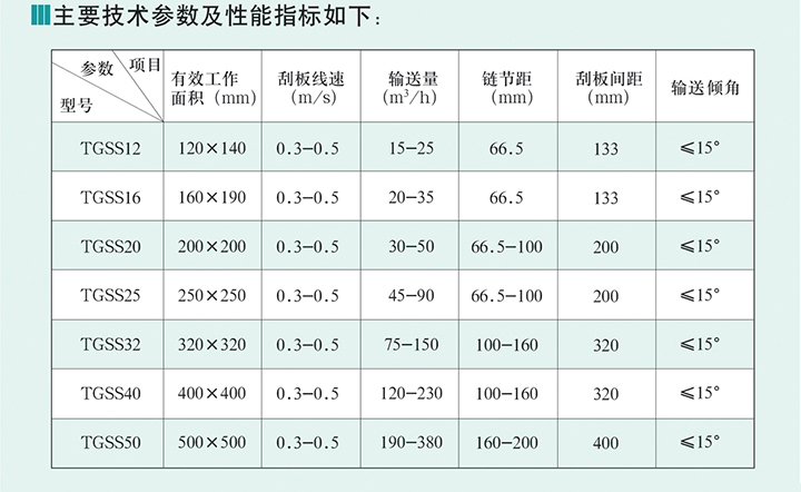 TGSS系列埋刮板輸送機常用于水平輸送顆粒和粉狀物料,亦能在15°角范圍內作傾斜輸送。同時在單點進出料基礎上也可多點進料,多點出料。設備中采用高強度刮板輸送鏈、耐磨導軌,配有防堵和斷鏈停車位置。具有整機壽命高、運行平穩(wěn)、結構尺寸小、輸送量大、能耗低、物料破損率低等特點,運用于糧食、糧油、飼料等行業(yè)和散裝物料部門。